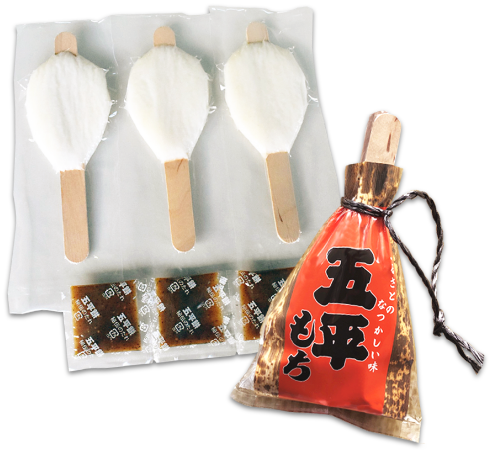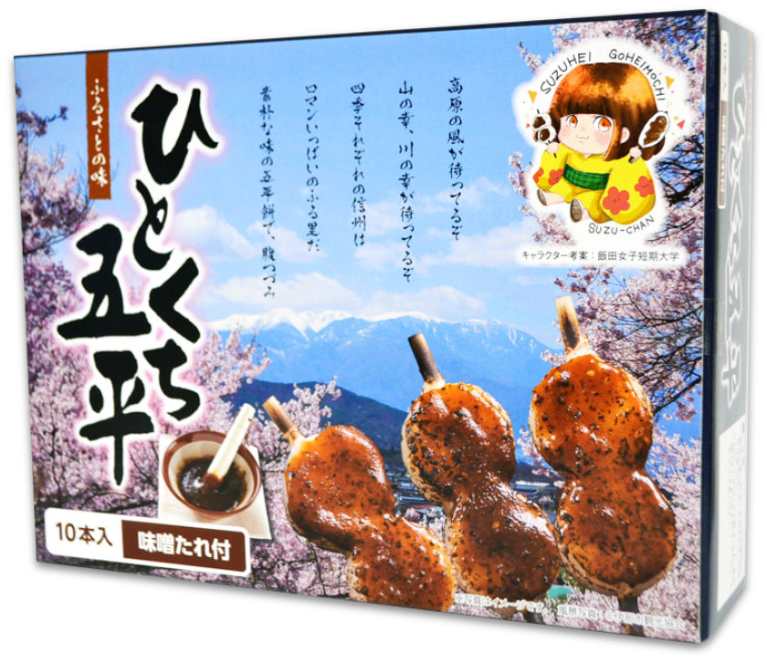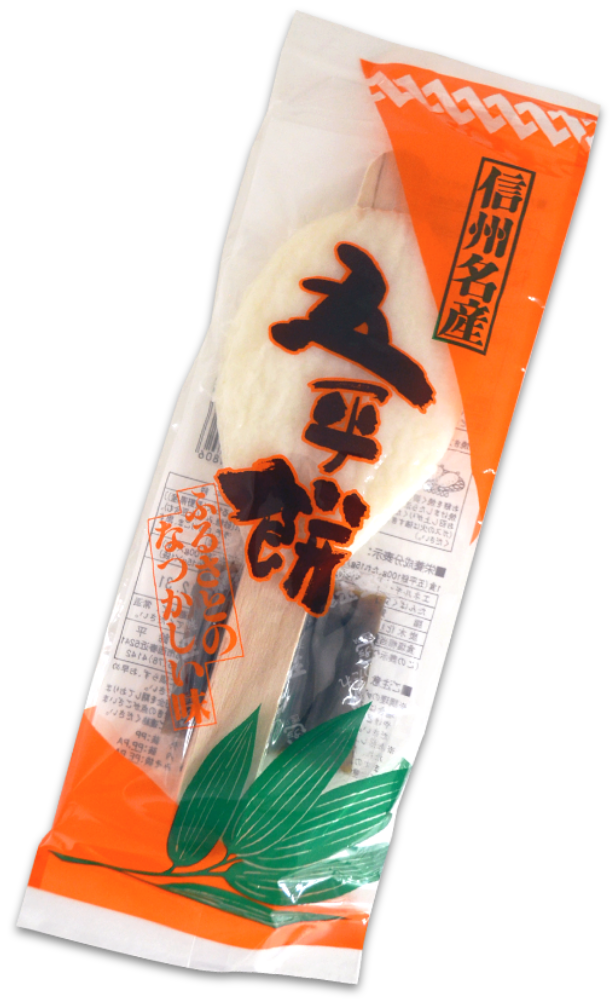 独自の製法により、わらじ型、だんご型、ひとくちサイズの五平餅及び味噌たれを製造しております。長野県内に限らず、国内各所のサービスエリアや観光地等のお土産品として、また、スーパー等にて販売しております。このほか、イベント・催事等でもご利用いただいております。