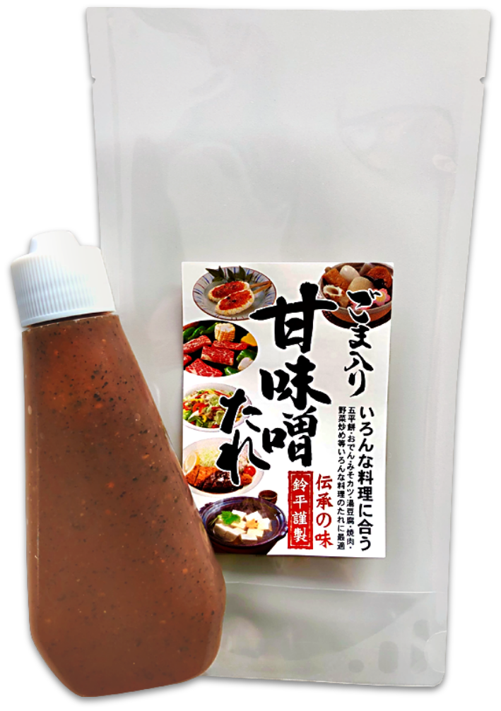 ごまの風味が口いっぱいに広がる、大変好評をいただいている鈴平独自の秘伝の甘味噌です。